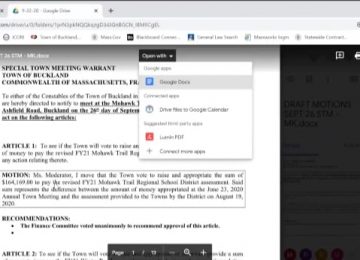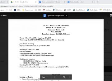 Buckland Select Board – Aug. 25, 2020